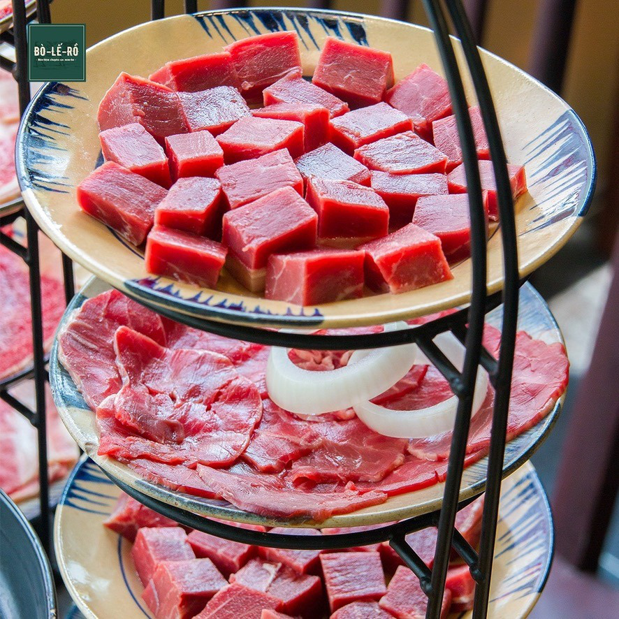 Thịt bò – nguyên liệu chính, được tuyển chọn và nhập khẩu tại Mỹ với nhiều lựa chọn cho khách hàng như: bắp vân hoa bò, nạc vai, ba chỉ, thăn lõi vai quân cờ, gân bò.