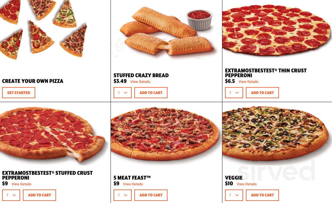 (Nguồn: Thực đơn của Little Caesars Pizza, Sirved)