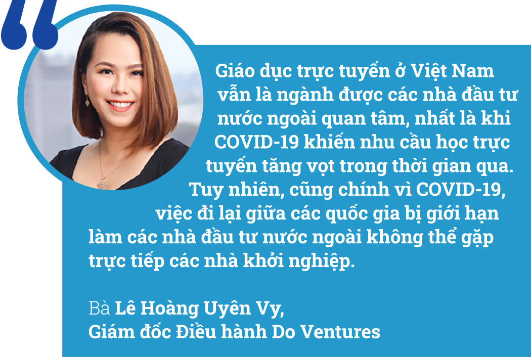 Trao đổi với NCĐT qua email, bà Lê Hoàng Uyên Vy, Giám đốc Điều hành Do Ventures, cho biết giáo dục trực tuyến ở Việt Nam vẫn là ngành được các nhà đầu tư nước ngoài quan tâm, nhất là khi COVID-19 khiến nhu cầu học trực tuyến tăng vọt trong thời gian qua. Tuy nhiên, cũng chính vì COVID-19, việc đi lại giữa các quốc gia bị giới hạn làm nhà đầu tư nước ngoài không thể gặp trực tiếp các nhà khởi nghiệp. Điều này dẫn đến hạn chế trong việc ra quyết định đối với các khoản đầu tư có giá trị lớn. Mặc dù vậy, năm 2021 cho thấy những dấu hiệu tích cực hơn vì chỉ mới tính 2 thương vụ đầu tư vào Elsa và Manabie, tổng giá trị đã gần bằng cả năm 2019. Do đó, giới đầu tư tin rằng tình hình sẽ được cải thiện khi dịch bệnh được kiểm soát.