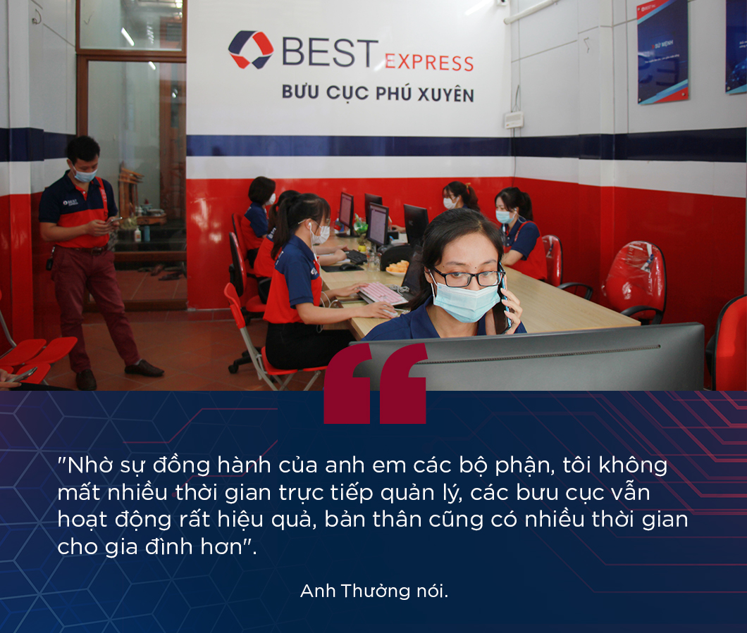 Để quản lý và vận hành tốt cả ba bưu cục, anh Thưởng đã nghiên cứu và đưa ra những quy trình làm việc cho từng vị trí công việc cùng với việc xây dựng chính sách khoán lương thưởng cụ thể.