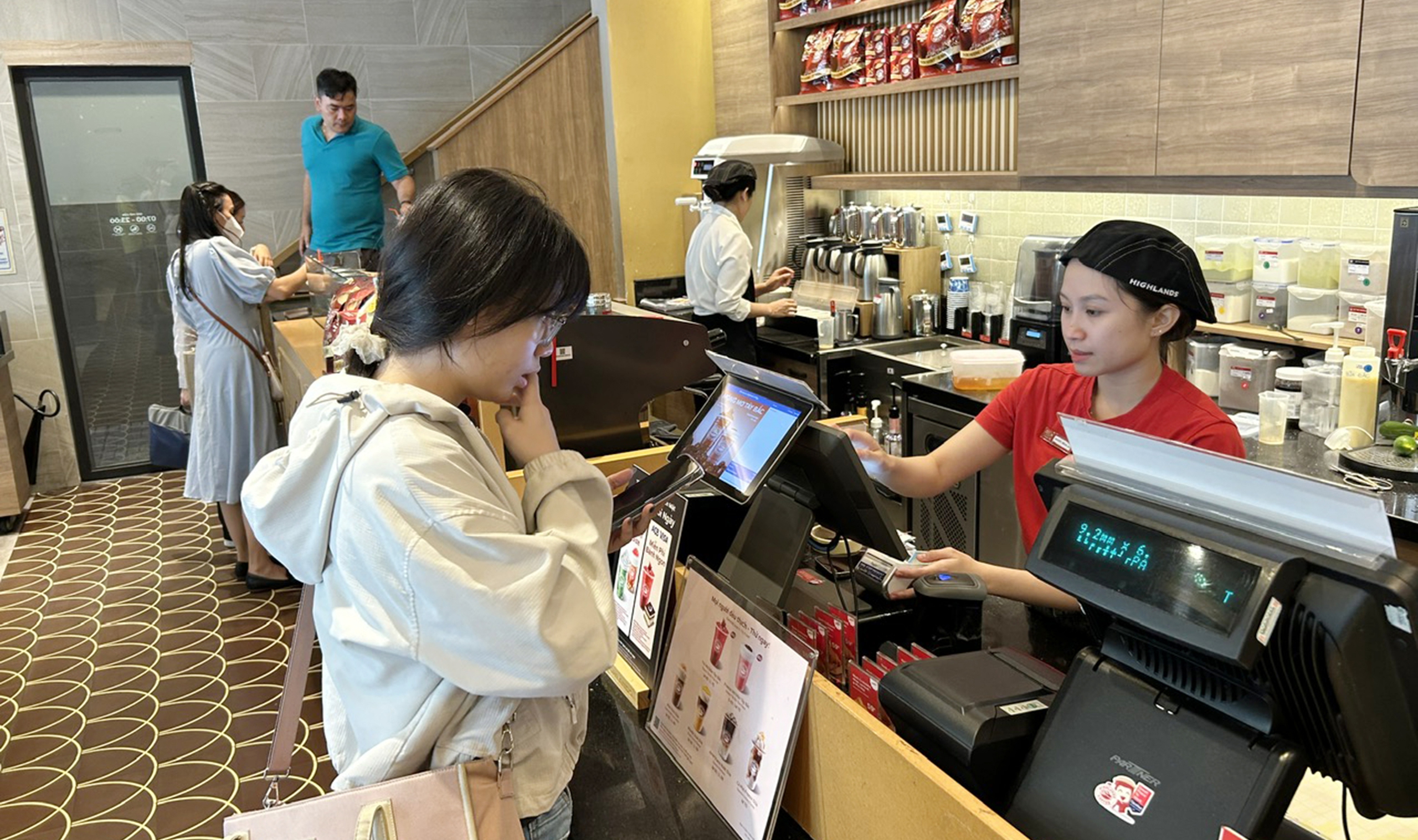 Khách gọi thức uống tại một quán cà phê Highlands ở TP.HCM vào ngày 5-9 – Ảnh: T.T.D.